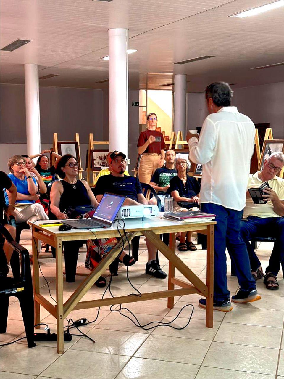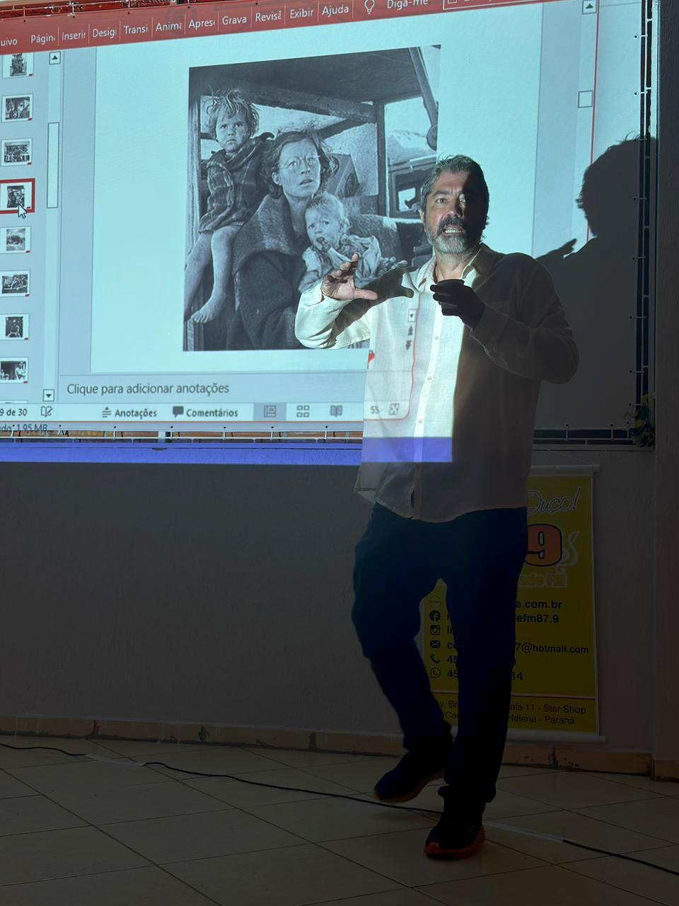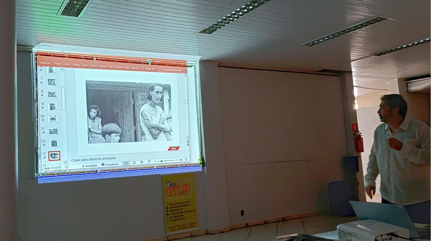 A oficina foi ministrada pelo fotógrafo e professor Paulo Porto Borges, da Universidade Estadual do Oeste do Paraná (Unioeste) e Coordenador dos Programas de Sustentabilidade das Comunidades Indígenas da Itaipu Binacional. Nessa ocasião analisou a importância histórica de fotógrafos como Dorothea Lange e August Sander, entre outros que contribuíram para registrar momentos históricos da sociedade. Além de analisar fotos feitas pelos próprios participantes da oficina.