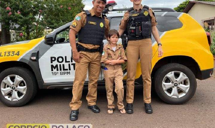 Criança recebe farda da Polícia Militar de Santa Helena no Natal